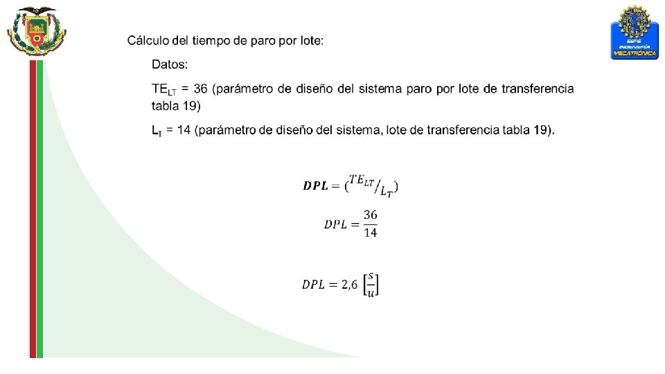 Dónde: TELT = Tiempo de paro en el transporte del lote de transferencia. LT = Lote de transferencia.