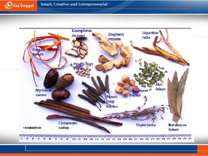 Tugas Kelompok • Masing-masing kelompok menghasilkan naskah farmakognosi tentang 2 buah tanaman penghasil simplisia. • Masing 2 menyerahkan Hard Copy dan Soft Copy (Makalah dan PPT) ke PJ. PJ menyerahkan Rekap berupa hard copy dan CD. • Softcopy dikumpulkan Rabu, 21 Maret 2018 pkl. 17. 00, hardcopy dikumpulkan Kamis, 22 Maret 2018. Isi: – Nama Simplisia – Deskripsi Simplisia – Kandungan utamanya. – Deskripsi Tumbuhan Penghasil – Ciri khas simplisia (Makroskopis dan Mikroskopis) – Khasiat termasuk cara penggunaan dosisnya – Cara panen – Produk yang sudah ada di pasaran dengan kandungan simplisia atau ekstraknya – Keterangan lain (bila ada) – Pustaka •