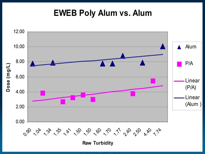 EWEB Ø 7 month trial of “Sumaclear 1000” from Summit Research Lab Ø Used Sumaclear predominantly through 2006. Ø Trial examined cost and filter run times while maintaining existing filtered water turbidity goal of 0. 035 NTU.