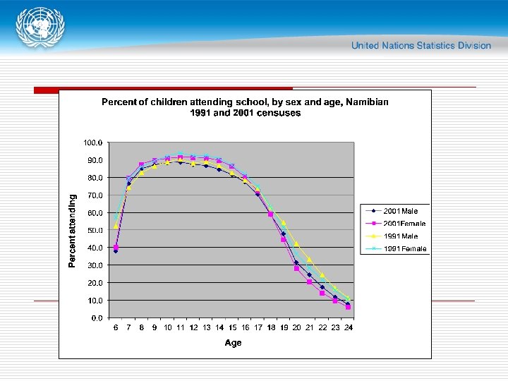 Percentage of students attending school by age and sex, Myanmar, 1983 90. 00 80. 00 70. 00 60. 00 50. 00 40. 00 30. 00 20. 00 10. 00 5 6 7 8 9 10 11 12 13 14 15 Total 16 17 Male 18 19 20 21 22 23 24 25 26 27 28 Female United Nations Workshop on Revision 3 of Principles and Recommendations for Population and Housing Censuses and Evaluation of Census Data, Amman 19 – 23 October 2014 29