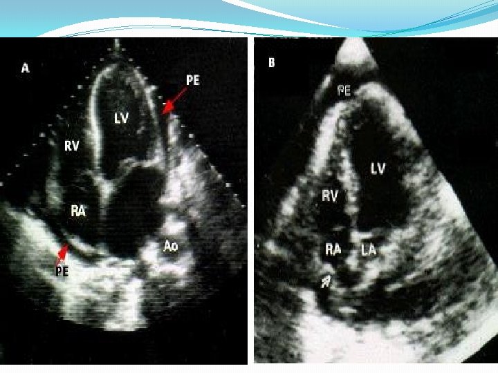 Determination of risk and need for hospitalization Fever (>38ºC [100. 4ºF]) and leukocytosis Evidence suggesting cardiac tamponade A large pericardial effusion (ie, an echo-free space of more than 20 mm) Immunosuppressed state A history of oral anticoagulant therapy Acute trauma Failure to respond within seven days to NSAID therapy Elevated cardiac troponin, suggestive of myopericarditis