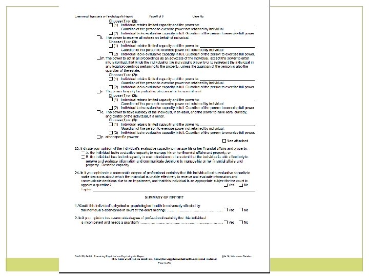 o This is a legal document that serves as a recommendation o The individual is entitled to a court hearing o The final decision rests with the court