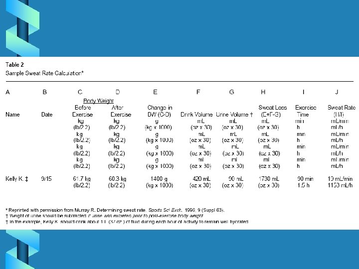Sweat Rates • Up to 2 liters per hour • 2% body weight impairs performance • Thirst not a good indicator of hydration status • 1 L of sweat = 1. 25 L ingested beverage • < 50% of fluid lost is typically replaced