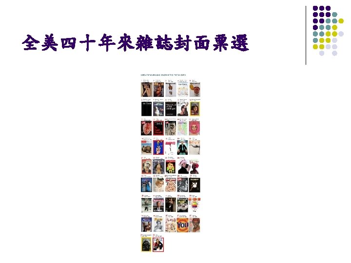 雜誌產業現況與分類 l l 雜誌產業現況 Classification of Magazines l l l Consumer magazines Business publications Farm publications