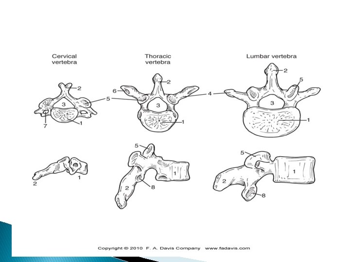 Facet Joints � Apophyseal of facet joints ◦ T 2 -T 11 facets face down, forward and slightly medial �This enables slight rotation in the thoracic spine � Thoracic spine ◦ 60 degree angle ◦ Superior facets face posterior ◦ Inferior facets face anterior