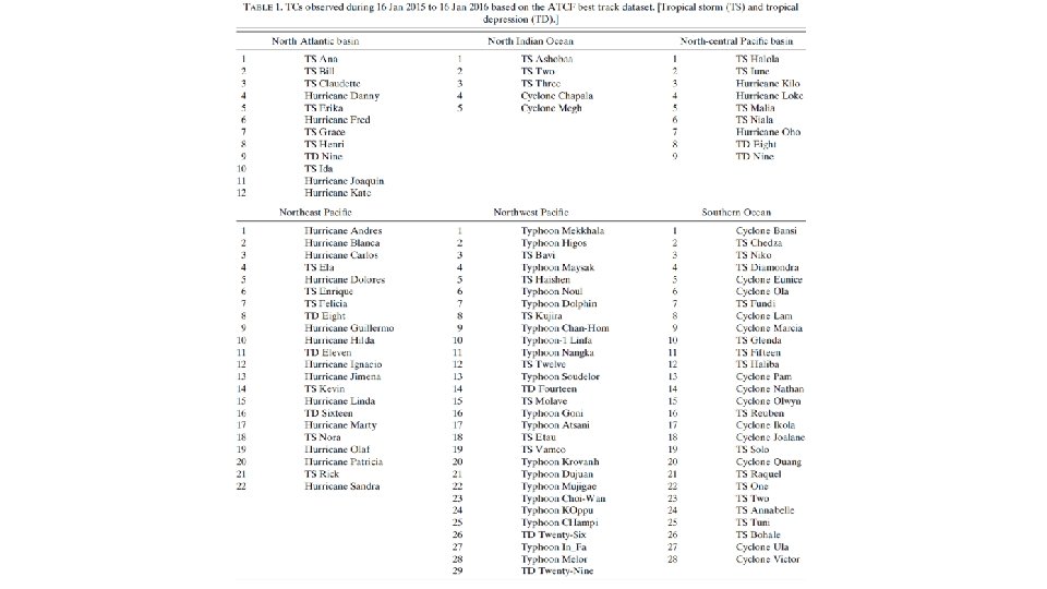 introduction • investigating the performance of global TC forecasts in fv. GFS based on 363 cases of 10 -day forecasts in 2015. • Verification: – TC track, intensity forecast errors, genesis forecasts