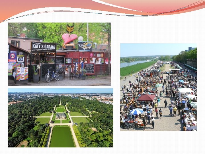 Programok �ESN kártyával sok minden olcsóbb volt (Semperoper 5 euróért!) �Rengeteg lehetőség van a városban �Színház, mozi, filmfesztiválok, koncertek, utca-zene fesztivál, kiállítások, múzeumok, templomok… óriási a kulturális élet a városban �Környéken rengeteg kirándulóhely van �Neustadt: tele van szórakozóhellyel, fiatalokkal, nyáron mezítlábas emberekkel. .