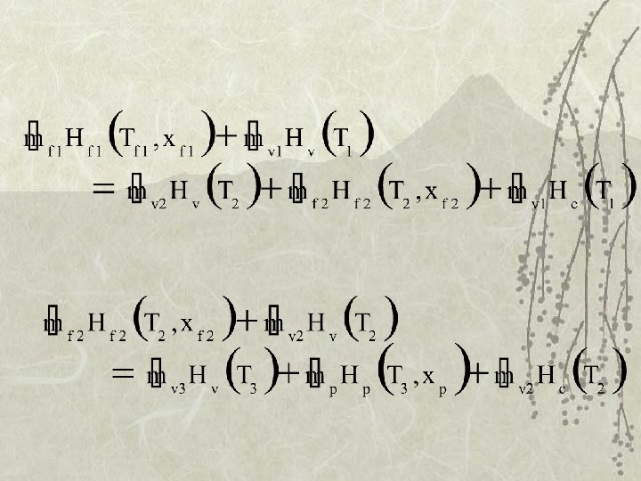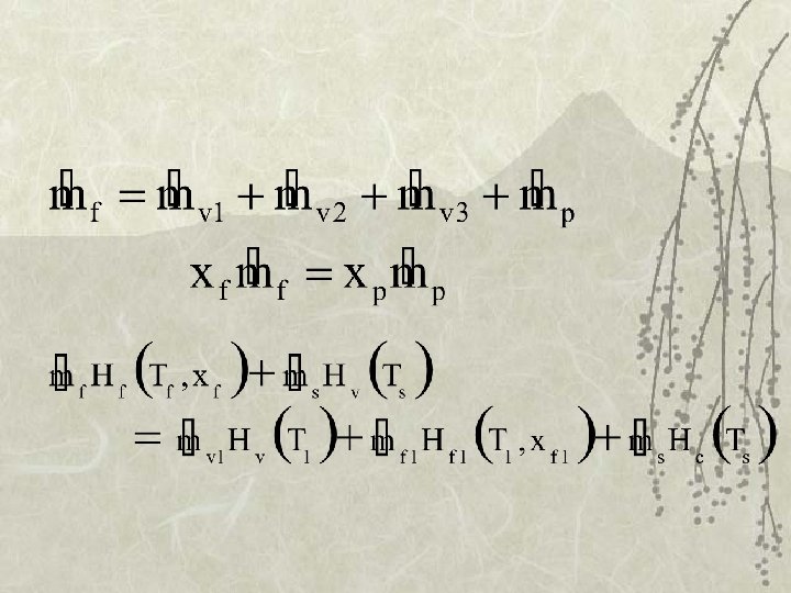 Enthalpy Balance v k. J/kg feed steam vapor product Hv (Ts), Hv (T 1) , Hc (Ts) from steam table condensate