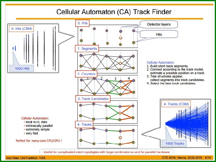 The Silicon Tracking System The STS is applied to detect the coordinates (hits) of the points where a particle crosses the planes of the STS stations. Tasks: • reconstruction of the trajectories (Cellular Automaton method ) and momentum of the charged particles (Kalman filter); • determination of primary and secondary vertexes (KFParticle. Finder) Technical Design Report for the CBM Silicon Tracking System www. fair-center. eu/fileadmin/fair/publications_exp/TDR-STS. pdf