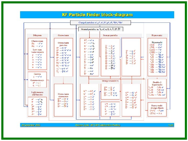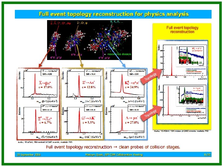 Collision What particles were born and their characteristics Detectors Particle identification: Trajectory, momentum STS, TRD Energy • detector response ECAL • transition radiation TRD • Cherenkov radiation RICH • time of flight TOF ECAL
