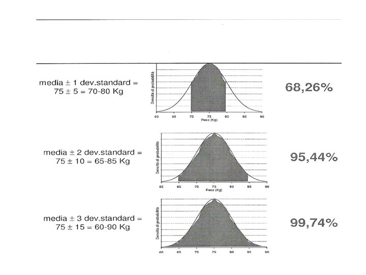 Le distribuzioni in generale • Quasi sempre di una distribuzione si fornisce – La media – La standard deviation – La moda : massima frequenza di una distribuzione (valore + probabile)