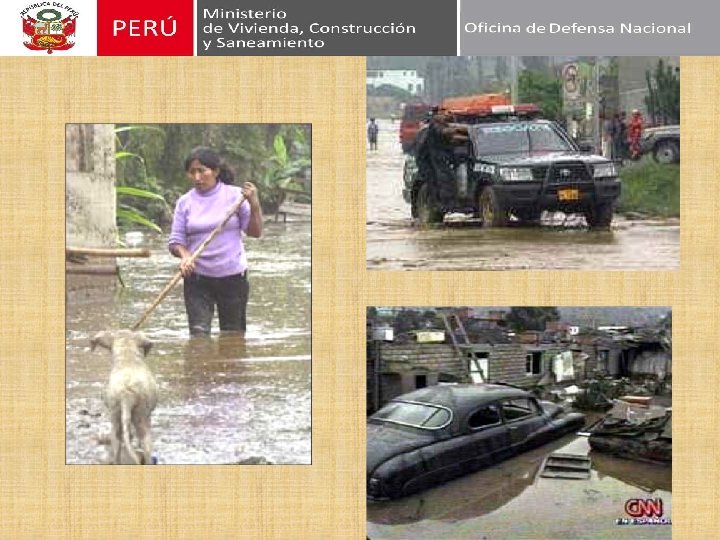 LOS DESASTRES OCASIONAN DAÑOS EN CASI TODO EL TERRITORIO NACIONAL Norte y Sur del País 1925 -26, 1982 -83, 1997 -98 El Niño Inundaciones, huaicos, deslizamientos) Rioja y Moyobamba 1990 -91 Terremoto Solo el último FEN ocasiono al país pérdidas económicas por más de US$ 3500 millones. Norte y Sur del País 1956 -57, 198283, 1990 -91, 200304 Sequías Huaraz 1970 Terremoto, En Piura los daños alcanzaron los US$ 300 millones. Lima 1940, 1966 y 1974 Terremoto Pisco 2007 Terremoto Zona Sur 2001 Terremoto Arequipa 1958, 1, 960 Terremoto Sur del País 2003 -04 -07 Friajes