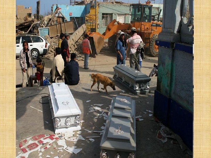 Desastres Importantes en el Perú Nazca Camana Sur del Perú 12/11/1996 23/06/2001 15/08/2007 Magnitud 6. 4 escala de Richter 6. 9 escala de Richter 7. 0 escala de Richter Epicentro O de Nazca 82 Km, NO de Ocoña 74 Km, O de Pisco Muertos 14 83 596 Heridos 624 2, 812 1, 292 Afectados 100, 000 219, 420 655, 674 Viviendas Destruidas 4, 000 22, 052 48, 208 Viviendas Afectadas e Inhabitable 11, 071 37, 576 96, 313 Evento