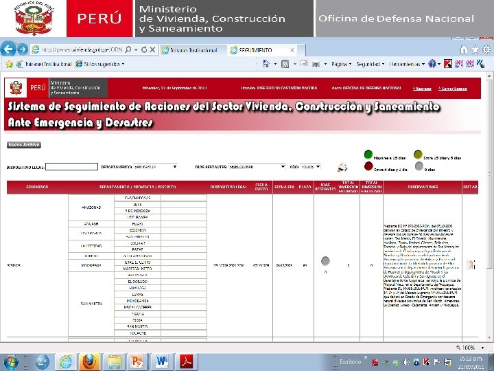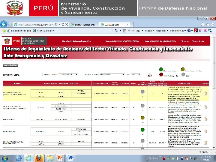 SISTEMA DE SEGUIMIENTO DE ACCIONES DEL SECTOR VIVIENDA, CONSTRUCCIÓN Y SANEAMIENTO ANTE EMERGENCIAS Y DESASTRES