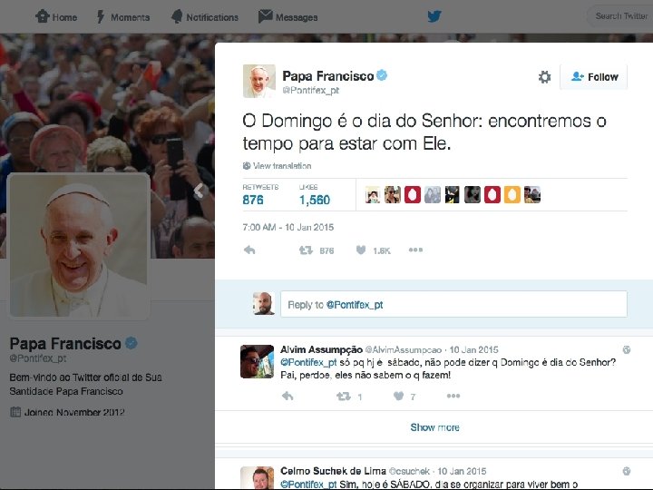 DECRETO DOMINICAL “A participac a o na Eucaristia e especialmente importante ao domingo. Este dia, a semelhanc a do sa bado judaico, e -nos oferecido como dia de cura das relac o es do ser humano com Deus, consigo mesmo, com os outros e com o mundo. O domingo e o dia da Ressurreic a o, o «primeiro dia» da nova criac a o, que tem as suas primi cias na humanidade ressuscitada do Senhor, garantia da transfigurac a o final de toda a realidade criada. ” Trecho de: Laudato Si, Papa Francisco
