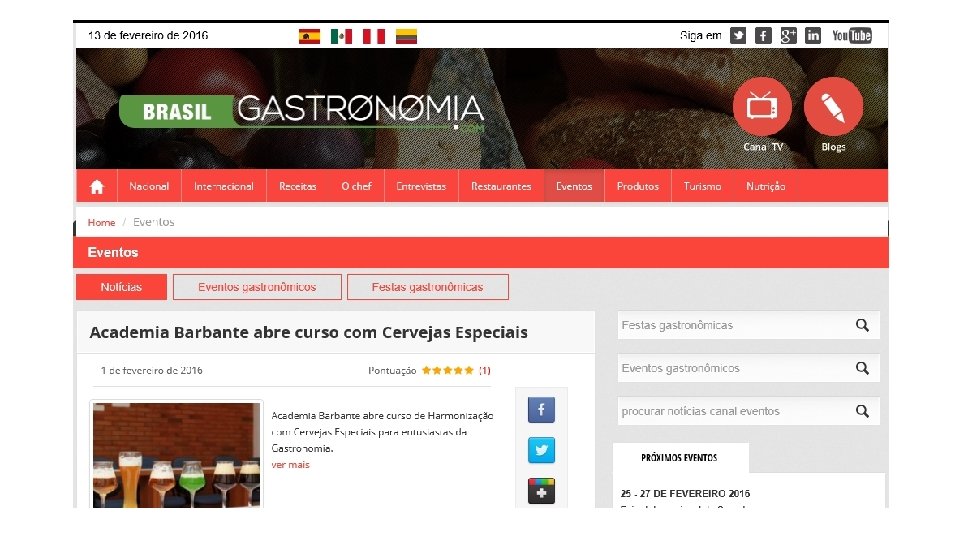 SITES EVENTOS VOLTADO PARA GASTRONOMIA • https: //abrafesta. com. br/ • http: //brasil. gastronomia. com • http: //www. cozinhaprofissional. com. br/eventos