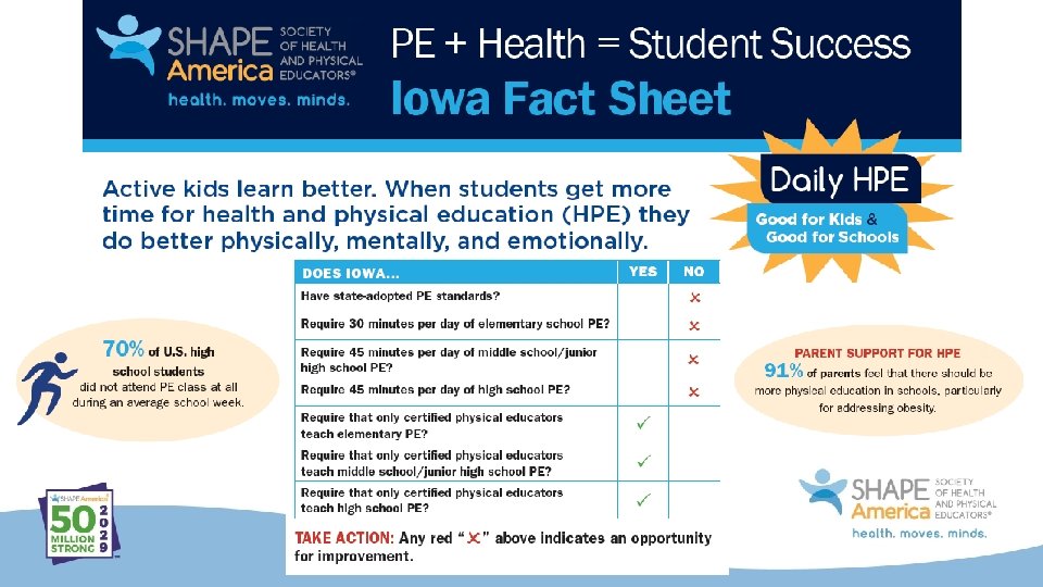 Take Action Now! Visit the SHAPE America Legislative Action Center at shapeamerica. org/advocacy to contact your members of Congress to ask for #More. Title. IV!