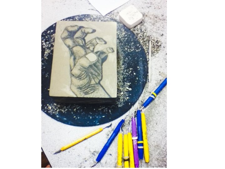 • clay sgraffito = scratching away a layer of underglaze to reveal the white clay underneath, typically done to create a design or pattern • Underglaze = a special type of glaze that can be applied to greenware, typically matt (not shiny) • Greenware = dry, unfired clay