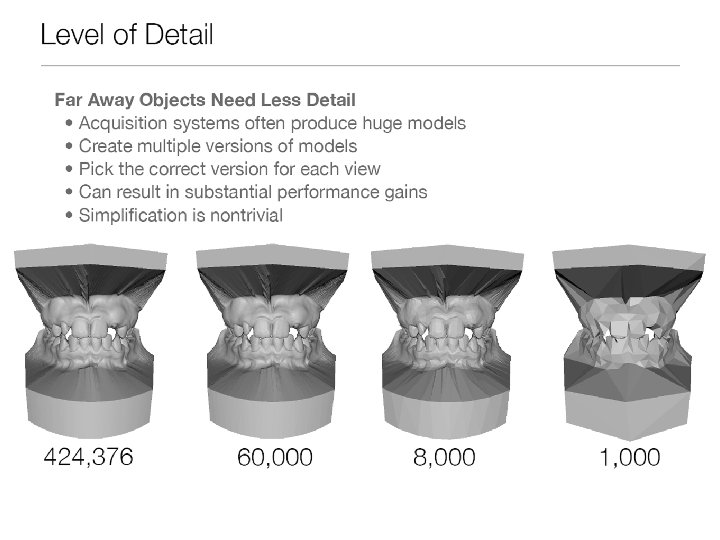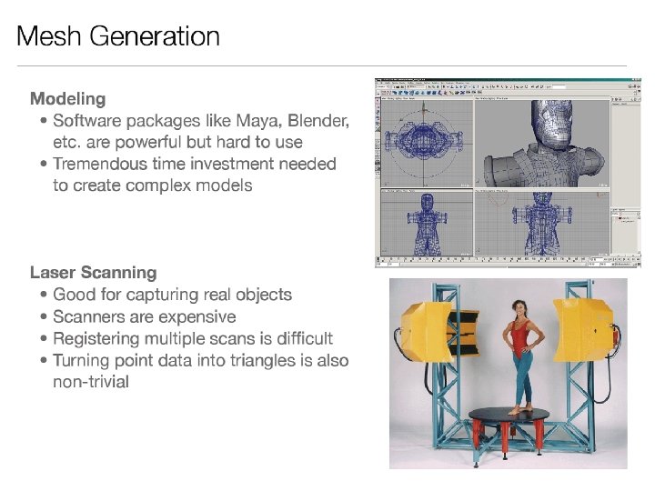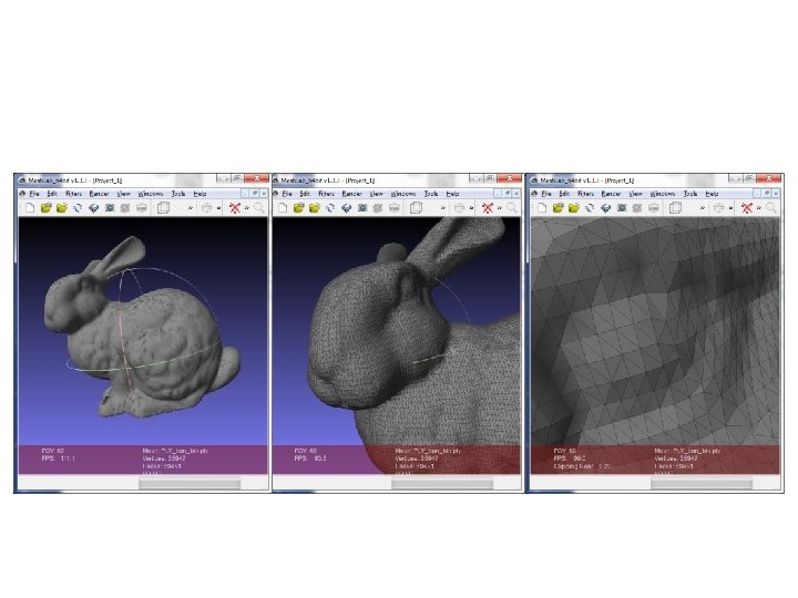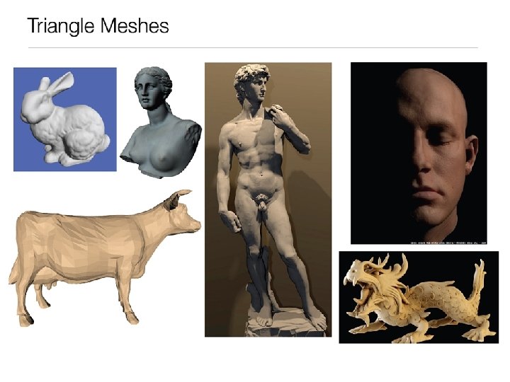 3 D Scene/Model File Formats ¢ ¢ ¢ Wavefront OBJ (. obj) 3 DS Max (. 3 ds) Geomview OFF (Object File Format) (. off) PLY (. ply) for scanned data … and more
