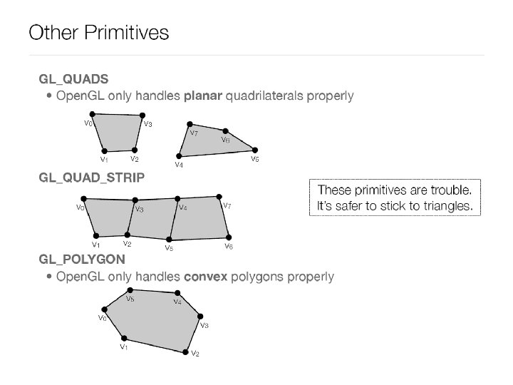 Q: What will render a square? (A) gl. Begin(GL_TRIANGLES) gl. Vertex 3 f(0, 0, 0); gl. Vertex 3 f(1, 1, 0); gl. Vertex 3 f(1, 0, 0); gl. Vertex 3 f(0, 1, 0); gl. Vertex 3 f(1, 1, 0); gl. End(); (C) gl. Begin(GL_TRIANGLES) gl. Vertex 3 f(0, 0, 0); gl. Vertex 3 f(1, 1, 0); gl. Vertex 3 f(1, 0, 0); gl. Vertex 3 f(0, 0, 0); gl. Vertex 3 f(1, 1, 0); gl. Vertex 3 f(0, 1, 0); gl. End(); (B) gl. Begin(GL_QUADS) gl. Vertex 3 f(0, 0, 0); gl. Vertex 3 f(0, 1, 0); gl. Vertex 3 f(1, 0, 0); gl. Vertex 3 f(1, 1, 0); gl. End(); (D) gl. Begin(GL_QUADS) gl. Vertex 3 f(0, 0, 0); gl. Vertex 3 f(0, 1, 0); gl. Vertex 3 f(1, 0, 0); gl. End(); (E) I just really don’t know