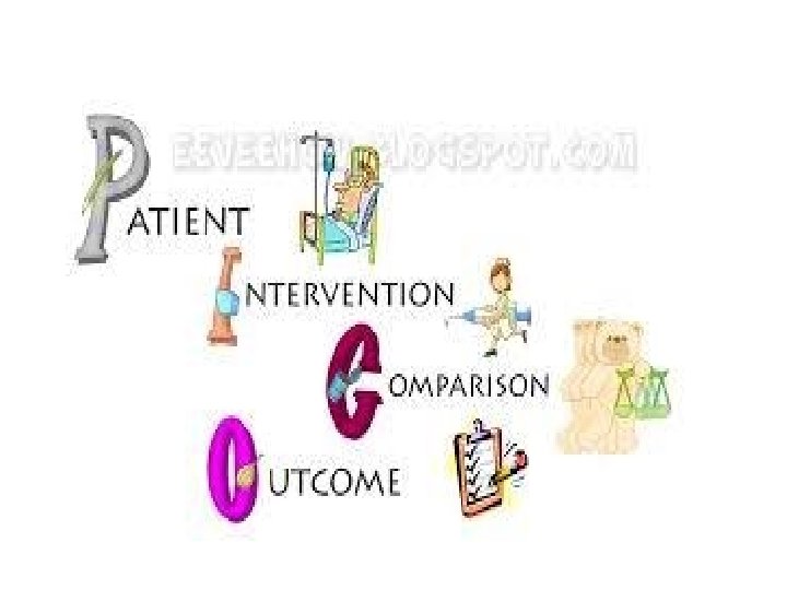 Ask clinical questions Build a question with 4 main components P opulation / Situation I ntervention / Exposure C ounter intervention O utcome T imeframe