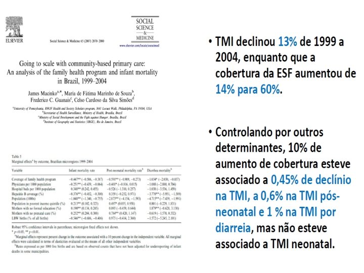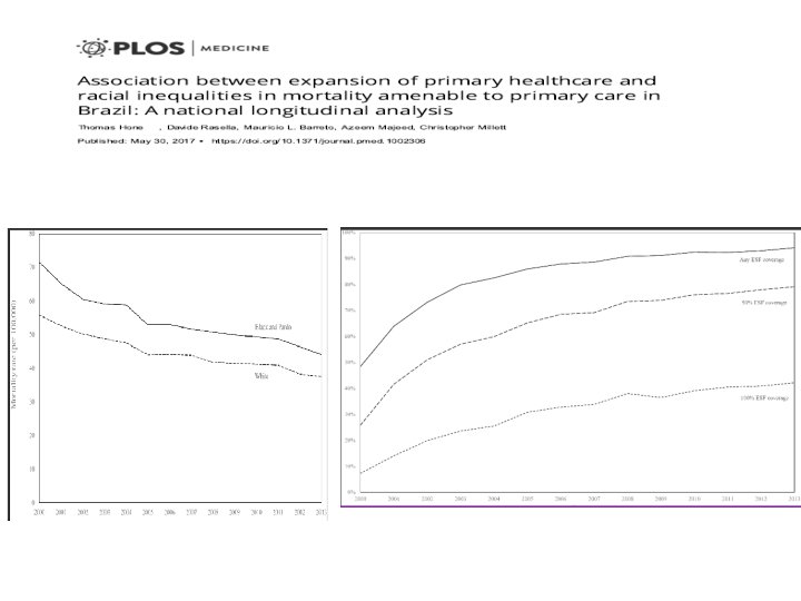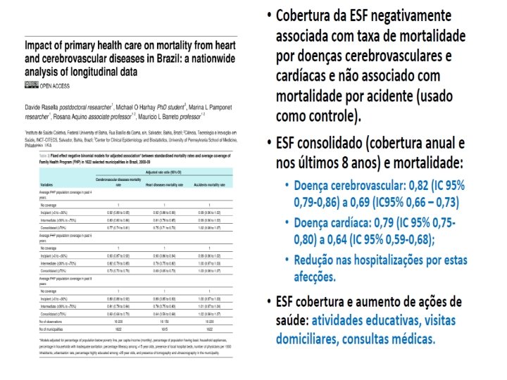 De 2000 a 2013, em 1. 622 municípios Expansão SF redução 15, 4% mortalidade em negros (6, 8% brancos) Por: D. Infecciosas, Def nutric e anemia, DM e CV