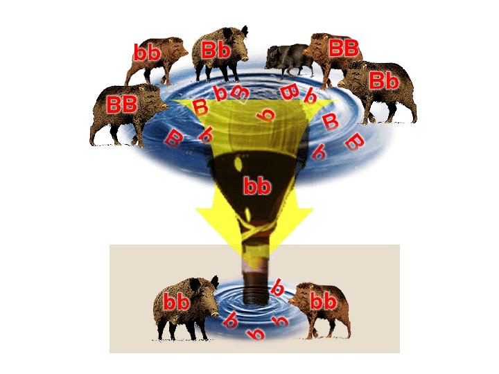 Genetic Drift • RANDOM change in allele frequency Happens by CHANCE EVENTS Happens in SMALL POPULATIONS NOT NATURAL SELECTION (Not related to fitness) • Coin Flip – 1, 000 times • How many Heads? – 10 times • How many Heads?