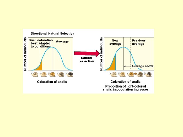 Types of natural selection • Directional natural selection - conditions shift so that individuals at one end of the normal range become more common than midrange forms “it pays to be different” • Most common during periods of environmental change or when members of a population migrate to a new habitat with different environmental conditions.