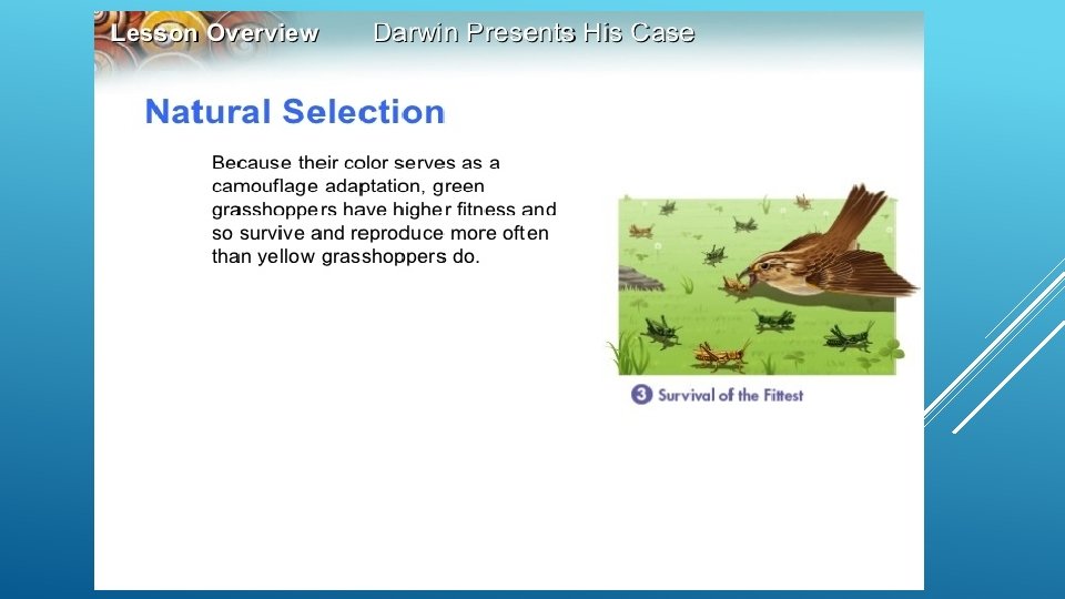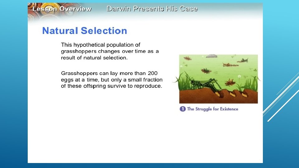 In his book, Darwin explains that his data and observations in nature led him to the following conclusions: There is a struggle for existence The influence of variation and adaptation Survival of the fittest ORIGIN OF THE SPECIES