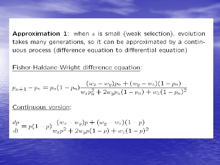 Evolution of genes under selection: Fisher-Haldane-Wright equation