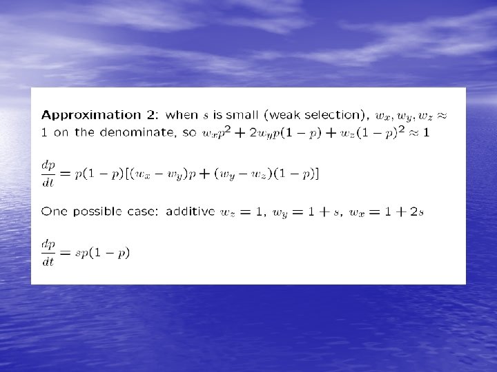 Assumptions in Hardy-Weinberg’s Law • • • Expected sex ratio is independent of genotype Mating is random Fertility is independent of genotype Survivorship is independent of genotype There is no mutation or migration Different survival rate or fertility rate for the two genotypes could break Hardy-Weinberg’s law
