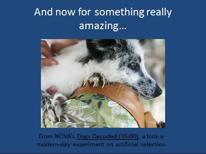 A Great Example of Artificial Selection “Artificial selection provides a model that helps us understand natural selection. It is a small step to envision natural conditions acting selectively on populations and causing natural changes. ” From www. evolution. berkeley. edu