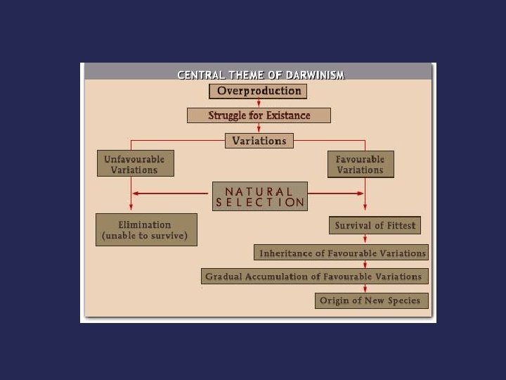 For Natural Selection to occur, 4 conditions must be met: 1. Traits in a population of organisms exhibit variation. 2. In any given population, not all individuals survive to reproduce. 3. Survival is NOT random. Survivors must have an advantage over those that don’t survive. A favorable trait gives the organisms an adaptive advantage. 4. The survivor’s advantageous traits MUST be heritable. High fitness means an organism’s ability to reproduce successfully. See flowchart on next slide…. .