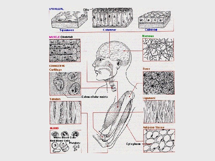 Evolution of Cancer • Human body has ~1014 cells from a single egg cell. • Typical adult cell has gone through ~50 divisions. • Each division is accompanied by 1 -10 errors typically - so total around 50 -500 mutations per cell. But 90% of mutations will do nothing. • Additional mutations can occur from UV, radiation, virus, etc. • Mutations that favor growth of an individual cell over survival of the organism lead to cancer. – Activation of pro-growth “oncogenes” – Suppression of anti-growth “tumor suppressor genes” • Occassionally can get cancer without mutation. – best example is teratoma.