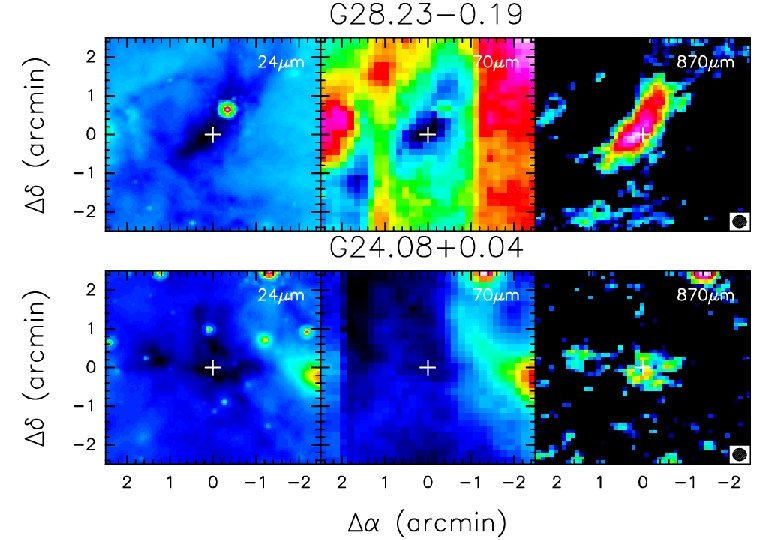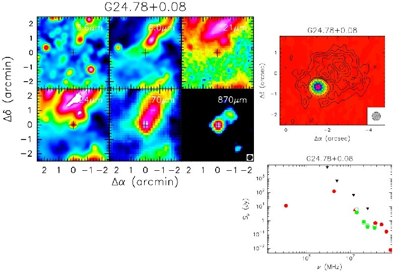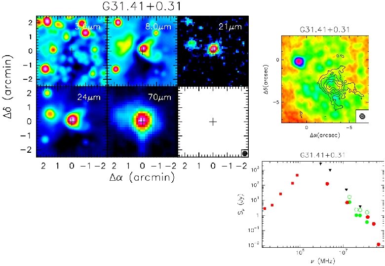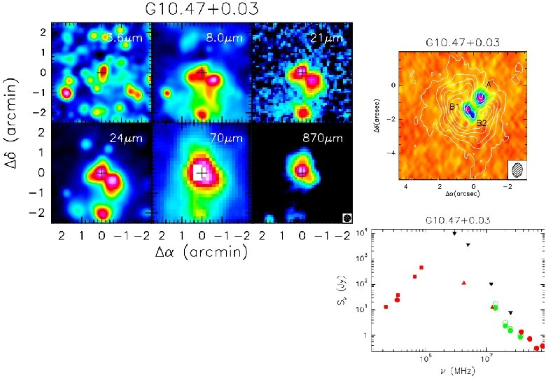 Findings for HMCs & UCHIIs • Large majority saturated in MIPSGAL (some also in GLIMPSE 8 µm) • IRAS fluxes likely overestimate by ~10 • SEDs and morphologies are basically the same for HMCs and UCHIIs: – SED = cold mm component + hot IR component – Morphology = IR peak coincident with submm core both HMCs and UCHIIs analogous to IR-P sources of Molinari et al. (2008) perhaps different luminosities i. e. 100 µm fluxes? Only Hi. Gal will tell us need for intermediate phase (MM-P sources) between IRDCs and HMCs ?