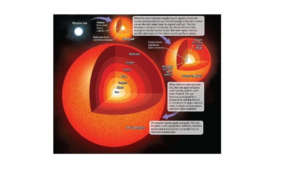Life Cycle of a Star (cont. ) • When a star’s hydrogen supply is nearly gone, the star leaves the main sequence and begins the next stage of its life cycle. • All stars form in the same way, but stars die in different ways, depending on their masses. • Massive stars eventually become red supergiants.