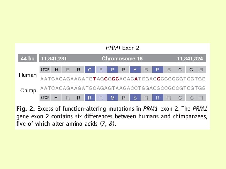 Gene expression differences in human and chimpanzee cerebral cortex • Affymetrix oligonuclotide array (~10, 000) genes • 91 show human-specific changes, ~90% increases Increased expression Decreased expression Caceres et al. (2003) Proc. Natl. Acad. Sci. USA 100, 13030 -13035