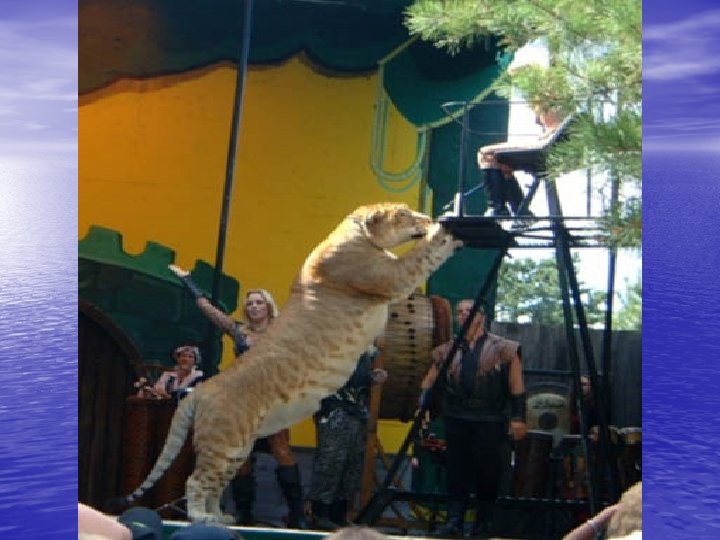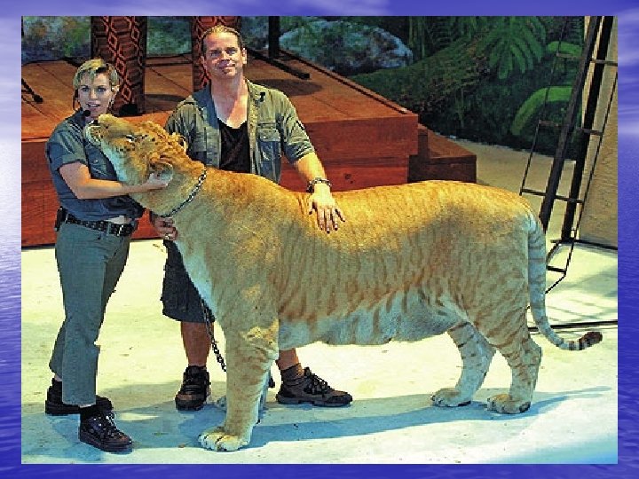 Liger Result of male lion and female tiger mating in captivity. Offspring are infertile.