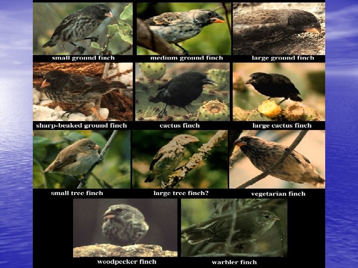 SPECIATION IN DARWIN’S FINCHES • SPECIAITON IN THE GALAPAGOS FINCHES OCCURRED BY: - FOUNDING OF A NEW POPULATION, - GEOGRAPHIC ISOLATION which led to -REPRODUCTIVE ISOLATION and CHANGES IN THE NEW POPULATION’S GENE POOL due to COMPETITION.