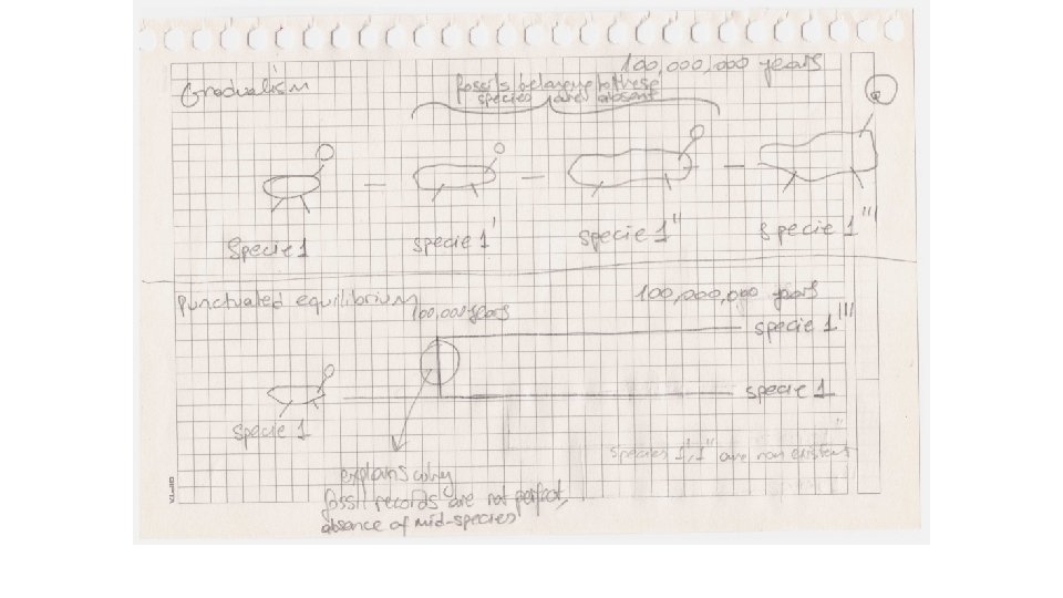 Theory of punctuated equilibirum Pace of evolution: + Natural selection: several millions of years. + During punctuation: less than 100, 000 years.