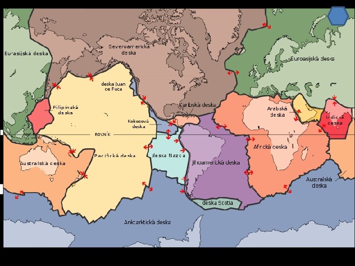 Geologický vývoj a povrch Asie Litosférické desky v Asii: Eurasijská, Indicko-australská (jejími součástmi jsou Indická a Australská deska - Australská se stýká s Eurasijskou v oblasti Indonésie), Arabská, Filipínská, Tichomořská. Popiš označené litosférické desky. 3 1 2 6 8 4 5 7 9 1 – Euroasijská, 2 – Arabská, 3 – Severoamerická, 4 – Filipínská, 5 – Indická, 6 – Australská 7 – Karolínská, 8 - Íránská