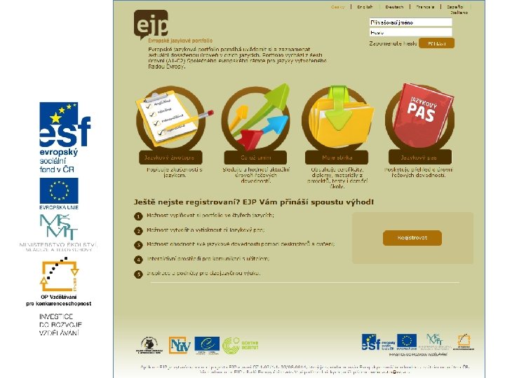 Klíčové aktivity Tvorba elektronických verzí EJP • Vytvoření 4 elektronických aplikací EJP s 6 jazykovými mutacemi www. evropskejazykoveportfolio. cz • vytvoření manuálů k těmto elektronickým verzím • testování aplikací • realizace pilotáže využití nového e. EJP ve výuce (480 zapojených žáků)