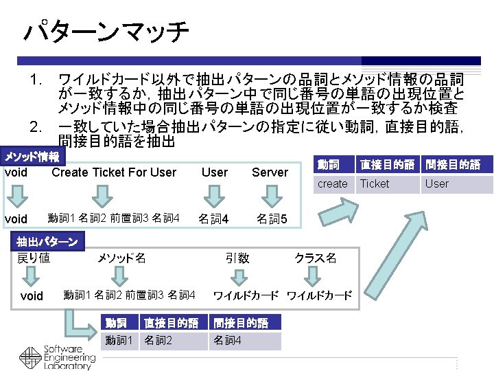 動詞-目的語関係 • プログラムの動作を表わす重要な関係 • オブジェクト指向プログラムのメソッドに着目 Ex. JMenuクラスの void add. Menu. Listener(Menu. Listener) Menu. Listener を JMenu に 追加(add)する 直接目的語 間接目的語 動詞 Department of Computer Science, Graduate School of Information Science & Technology, Osaka University 3