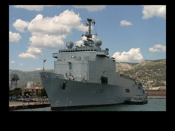 La Marina francesa opera dos navios de clase Foudre, estos son plataformas flotantes y buques transporte para medios anfibios de desembarco. En la actualidad estan activos el Foudre (L 9001) y el Siroco (L 9012), los cuales fueron comisionados en 1990 y 1998 respectivamente. Los navios fueron construidos en los astilleros de Brest por DCN. Estan asignados a la Fuerza Accion Naval con base en Toulon. La clase Foudre está capacitada para transportar y soportar un regimiento mecanizado de la Fuerza de desplazamiento rapido francesa. Sus tres cometidos principales son: transporte y desembarco de infanteria y vehículos mecanizados en playas no preparadas, transporte logistico para fuerzas navales y misiones humanitarias. DISEÑO La clase Foudre cuenta con un area de 13. 000 metros cubicos que pueden ser utilizados como puerto flotante o transporte de vehiculos anfibios. Puede acomodar en un interior 10 vehiculos anfibios medianos o un vehiculo anfibio LSM y cuatro de tamaño medianos LCM. Su capacidad de carga es de 52 toneladas y cuenta con una grua capaz de levantar pesos de 37 toneladas. Tiene una tripulacion de 210 hombres y 13 oficiales; pudiendo acomodar 467 pasajeros. En misiones humanitarias puede transportar hasta 1600 pasajeros. A fin de poder desempeñara a cavalidad sus funciones humanitarias cuenta con un hospital para misiones medicas a gran escala y misiones de evacuacion, incluyendo dos salas de operaciones completas y 47 camas. HELICOPTEROS El buque cuenta con una cubierta de vuelo de 1450 mts cuadrados y puede acomodar hasta siete helicopteros Super Puma. Existen tres areas de aterrizaje. El area del hangar puede transportar dos helicopteros Super Freelon o cuatro Super Puma