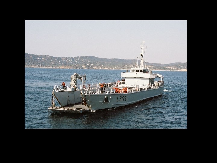 El casco está construido alrededor de una cuenca interior, el suelo , que se extiende por las tres cuartas partes de la longitud de la nave. Está previsto llevar a cabo el desembarco de tanques y vehículos que utilizan lanchas de desembarco diferentes. ¿Cuáles son las funciones de transporte y el desarrollo de estos oeuvre barcazas que determinan en esencia la estructura de la nave. Durante el tránsito al teatro, las barcazas fueron transportados a secar el piso. La implementación se lleva a cabo después de barcazas empujadas por lastrar la nave, el relleno de la planta y abrió la puerta trasera de la División de Cooperación Técnica. El lastrado y deslastrado se llevan a cabo a través de cuatro bombas de 4. 000 m 3 / h de forma remota desde una estación central y el suministro de un total de 26 balastos. Las válvulas se controlan a distancia. Lastrado instalaciones están diseñadas para permitir a las siguientes actuaciones: - el edificio es el desplazamiento a plena carga, sin carga, el suelo puede estar inmerso en unos 30 minutos, - los balastos el suelo se sumerge y se llena, se puede vaciar en 45 minutos - en una situación de balasto, el nivel del agua en el suelo es de 3 m. El puente móvil puede ser utilizado como una zona de aterrizaje secundaria, o como estacionamiento para vehículos. Los paneles se instalan en su pista con la grúa. Ellos se quitan cuando se quiere enradier proyecto vasos profundos de aire. El barco fue diseñado para facilitar la circulación de vehículos. Un ascensor sirve 52 toneladas y en el suelo, los vehículos de hangar, puentes móviles, el aparcamiento en el techo de la nave y el lado de la rampa la puerta del vehículo. 1 - Embarque de grandes barcazas blindados para el transporte materiales inmersos en el suelo. Las barcazas se transportan en el suelo durante el transporte del edificio. 2 - Vehículos de carga de rampa lateral a través de la puerta del ascensor y servicio de los parking de almacenamiento de vehículos. 3 - Embarque a partir de un muelle por la puerta de la huelga y levantar o mediante una grúa de 37 toneladas.