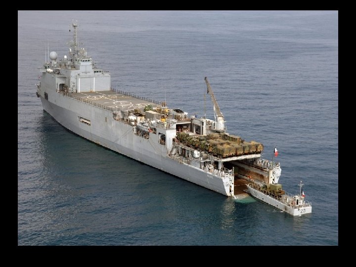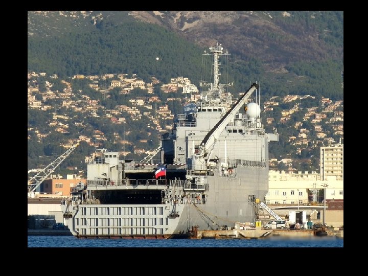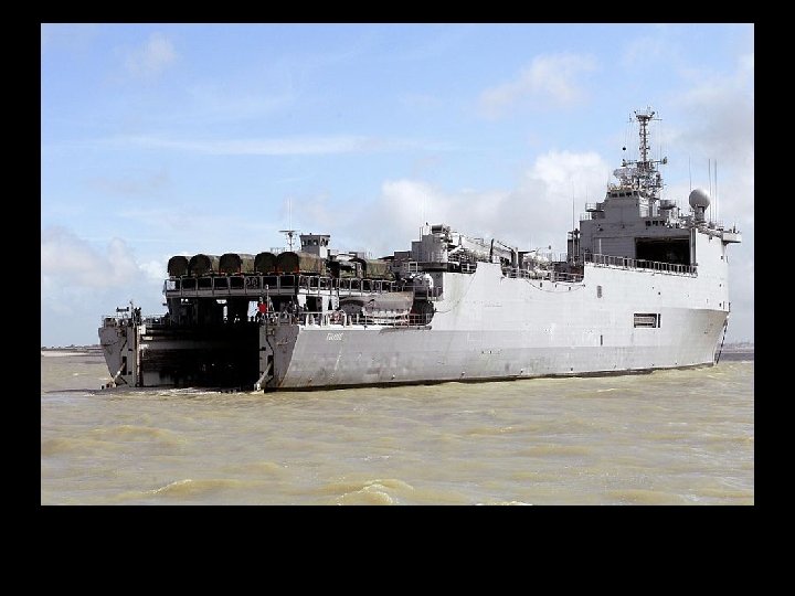Características generales Desplazamiento 11. 300 t estándar 12. 000 t apc Eslora 168 m Manga 23, 5 m Calado 5, 2 m Armamento • 3 sistemas Simbad • 3 cañones Breda-Mauser de 30 mm • 4 ametralladoras M 2 -HB Browing de 12, 7 mm Propulsión • 2 SEMT Pielstick 16 PC 2. 5 V 400 diésel • 2 hélices de paso variable • 1 motor auxiliar de 1. 000 CV • Planta eléctrica: 5 alternadores diésel SACM-Unidiesel Potencia • 20. 800 CV (15. 290 k. W) • Potencia eléctrica: 4. 250 k. W (5 × 850 k. W) Velocidad 21 nudos Autonomía 20. 300 km a 15 nudos Tripulación 160 tripulantes Tropas Capacidad Aeronaves Equipamiento aeronaves • 150 hombres de cuartel de mando • 450 soldados (900 para trayectos cortos) • 10 CTM o 1 LCU o 2 CLT • 22 Leopard 2 A 4 CHL o 28 FV 101 • 40 Bv 206 • 20 Humvee • 41 vehículos todoterreno (KM 420, Panhard PVP) • 54 camiones KIA KM-250 • 15 camiones ligeros KIA KM 450 • 5 camiones cisterna para combustible • 2 cabezas tractoras • 6 morteros de 120 mm • 67 contenedores and one beach • total 3. 300 t. 4 helicópteros AS 332 L Super Puma hangar