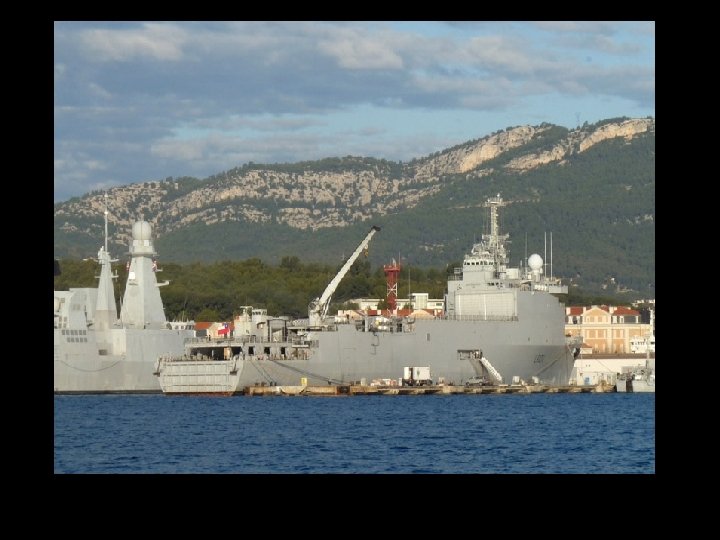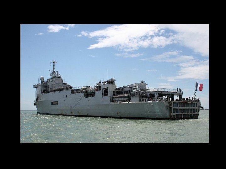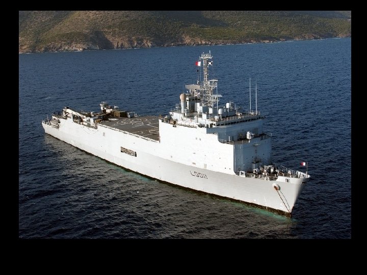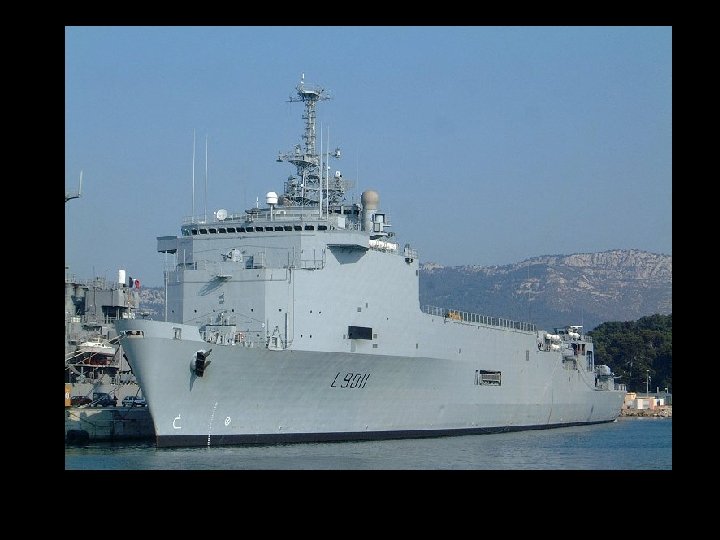 La Marina francesa opera dos navios de clase Foudre, estos son plataformas flotantes y buques transporte para medios anfibios de desembarco. En la actualidad estan activos el Foudre (L 9001) y el Siroco (L 9012), los cuales fueron comisionados en 1990 y 1998 respectivamente. Los navios fueron construidos en los astilleros de Brest por DCN. Estan asignados a la Fuerza Accion Naval con base en Toulon. La clase Foudre está capacitada para transportar y soportar un regimiento mecanizado de la Fuerza de desplazamiento rapido francesa. Sus tres cometidos principales son: transporte y desembarco de infanteria y vehículos mecanizados en playas no preparadas, transporte logistico para fuerzas navales y misiones humanitarias. DISEÑO La clase Foudre cuenta con un area de 13. 000 metros cubicos que pueden ser utilizados como puerto flotante o transporte de vehiculos anfibios. Puede acomodar en un interior 10 vehiculos anfibios medianos o un vehiculo anfibio LSM y cuatro de tamaño medianos LCM. Su capacidad de carga es de 52 toneladas y cuenta con una grua capaz de levantar pesos de 37 toneladas. Tiene una tripulacion de 210 hombres y 13 oficiales; pudiendo acomodar 467 pasajeros. En misiones humanitarias puede transportar hasta 1600 pasajeros. A fin de poder desempeñara a cavalidad sus funciones humanitarias cuenta con un hospital para misiones medicas a gran escala y misiones de evacuacion, incluyendo dos salas de operaciones completas y 47 camas. HELICOPTEROS El buque cuenta con una cubierta de vuelo de 1450 mts cuadrados y puede acomodar hasta siete helicopteros Super Puma. Existen tres areas de aterrizaje. El area del hangar puede transportar dos helicopteros Super Freelon o cuatro Super Puma