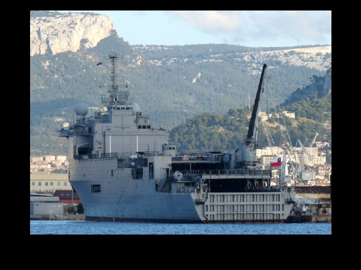 Características generales Desplazamiento 11. 300 t estándar 12. 000 t apc Eslora 168 m Manga 23, 5 m Calado 5, 2 m Armamento • 3 sistemas Simbad • 3 cañones Breda-Mauser de 30 mm • 4 ametralladoras M 2 -HB Browing de 12, 7 mm Propulsión • 2 SEMT Pielstick 16 PC 2. 5 V 400 diésel • 2 hélices de paso variable • 1 motor auxiliar de 1. 000 CV • Planta eléctrica: 5 alternadores diésel SACM-Unidiesel Potencia • 20. 800 CV (15. 290 k. W) • Potencia eléctrica: 4. 250 k. W (5 × 850 k. W) Velocidad 21 nudos Autonomía 20. 300 km a 15 nudos Tripulación 160 tripulantes Tropas Capacidad Aeronaves Equipamiento aeronaves • 150 hombres de cuartel de mando • 450 soldados (900 para trayectos cortos) • 10 CTM o 1 LCU o 2 CLT • 22 Leopard 2 A 4 CHL o 28 FV 101 • 40 Bv 206 • 20 Humvee • 41 vehículos todoterreno (KM 420, Panhard PVP) • 54 camiones KIA KM-250 • 15 camiones ligeros KIA KM 450 • 5 camiones cisterna para combustible • 2 cabezas tractoras • 6 morteros de 120 mm • 67 contenedores and one beach • total 3. 300 t. 4 helicópteros AS 332 L Super Puma hangar