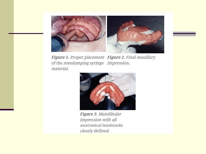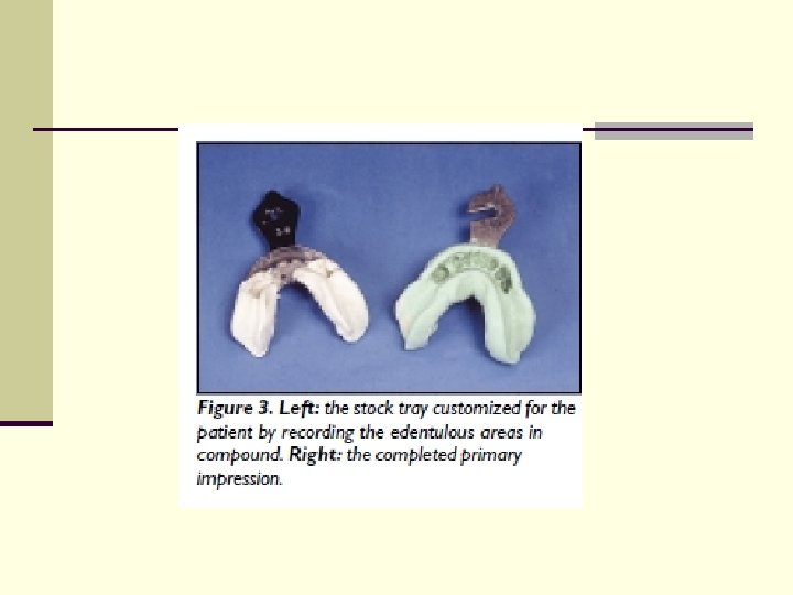 References n n n n 1. Douglass CW, Shih A, Ostry L. Will there be a need for complete dentures in the United States in 2020? J Prosthet Dent. 2002; 87: 5 -8. 2. Massad JJ, Connelly ME, Davis B. The Static impression technique for removable prosthodontics. Postgraduate Dentistry (a supplement to the Compendium). 2000; 7: 3 -7. 3. Turbyfill W. Impression techniques for removable partial dentures. Gen Dent. 2001; 49: 358 -364. 4. Massad JJ, Connelly ME. A simplified approach to optimizing denture stability with lingualized occlusion. Compend Contin Educ Dent. 2000; 21: 555 -558, 560, 562. 5. Parr GR, Ivanhoe JR, Lingualized occlusion: an occlusion for all reasons. Dent Clin North Am. 1996; 40: 103 -112. 6. Lang BR, Razzoog ME. Lingualized integration: tooth molds and an occlusal scheme for edentulous implant patients. Implant Dent. 1992; 1: 204 -211. 7. Sykora O, Sutow E. Practical assessment of a continuous injection denture processing technique (SRIvocap). Quintessence Dent Technol. 1988; 147 -154.