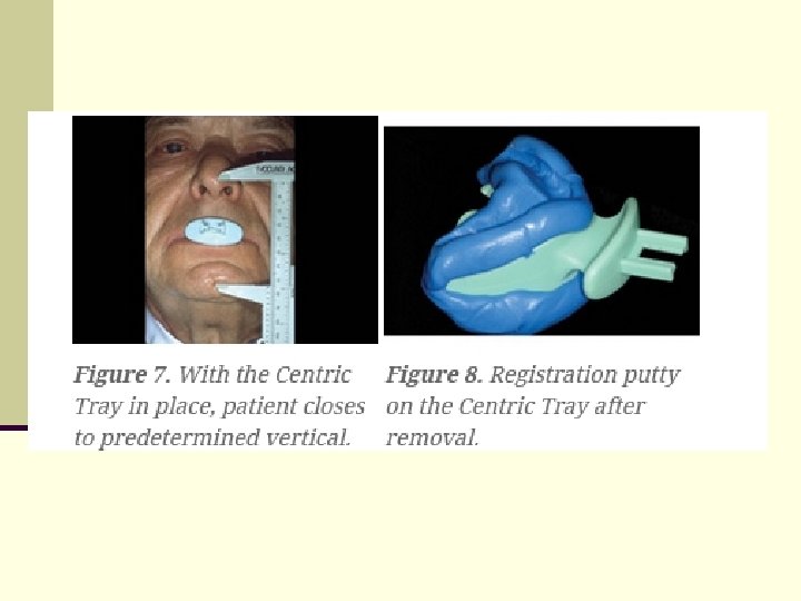 n Another procedure that we recommend during the impression- taking appointment is the use of the Centric Tray (Figure 6) (Ivoclar North America). The Centric Tray is made of rigid plastic material, and is designed to take a double-arch registration simultaneously. The Centric Tray is used to record a preliminary vertical and centric jaw registration at the same impression appointment. This gives the technician the opportunity to mount the models on an articulator prior to the fabrication of the wax bite rims. This handy instrument can save a lot of valuable chair time and frustration for the next appointment.